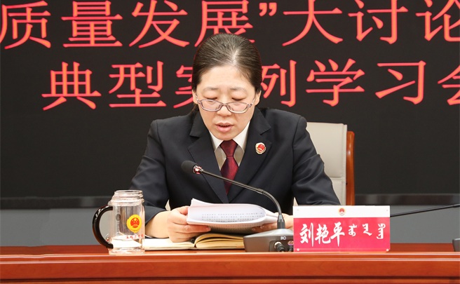 会议由检委会专职委员刘艳平主持,在家院领导班子以及全体干警参加学习。