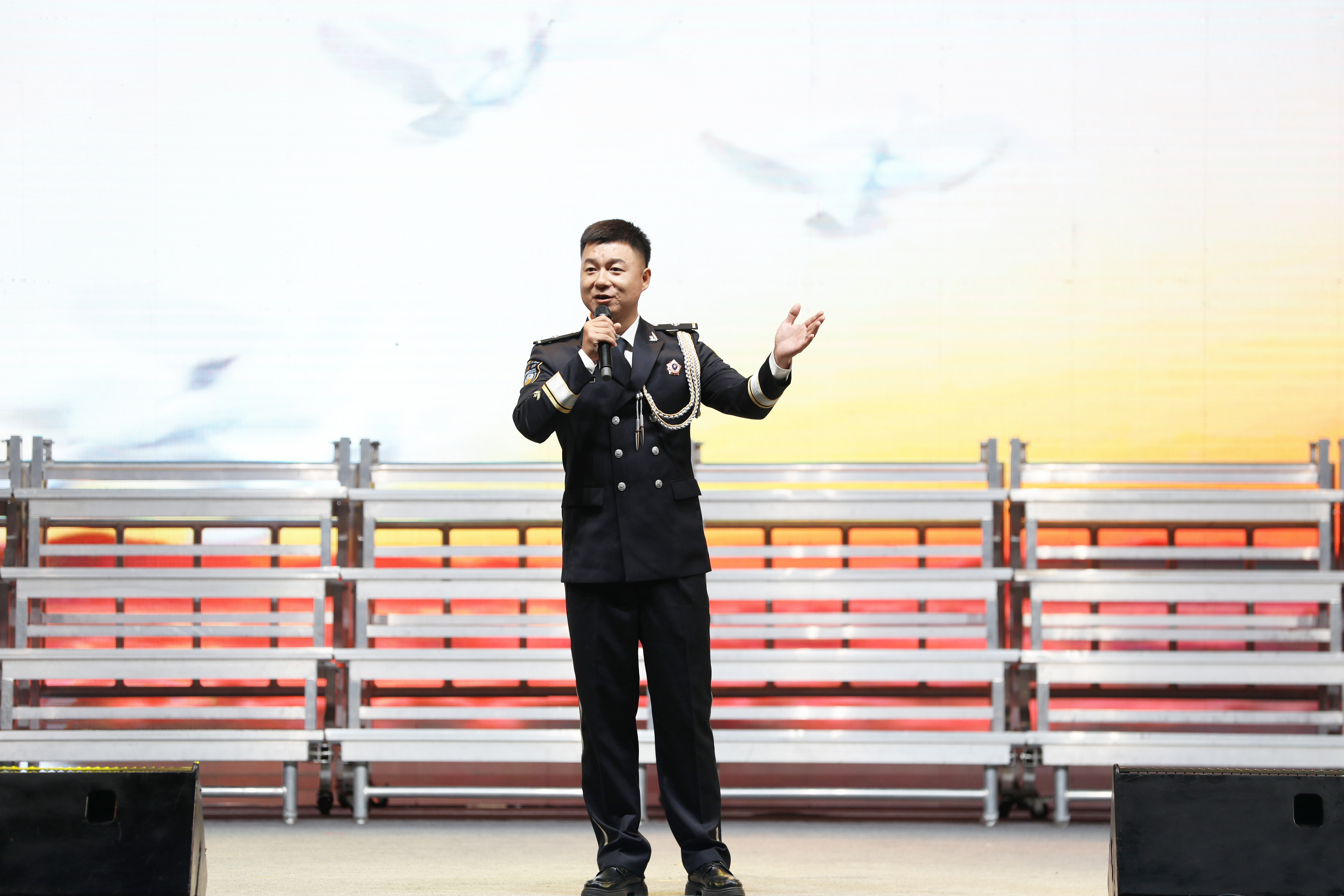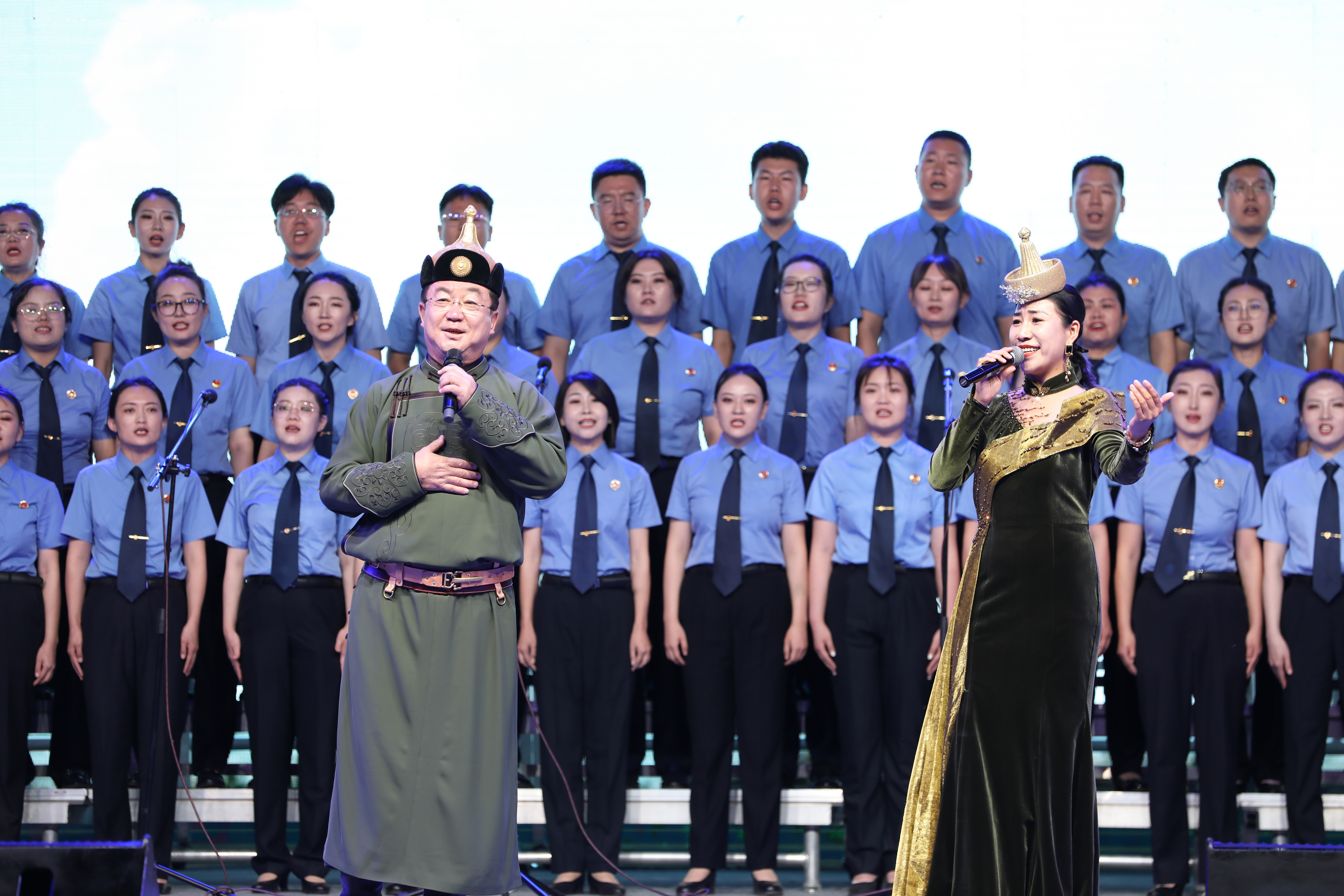 红歌汇演现场,政法干警们化身为红色旋律的传播者。他们身着整齐的制服,眼神坚定而炽热,从铿锵有力的《不忘初心》,到豪情满怀的《歌唱祖国》,每一首歌曲都饱含着对党的深情告白。舞台上,政法干警们用嘹亮的歌声,将那段波澜壮阔的革命岁月重现;舞台下,观众们挥舞着手中的党旗,掌声、欢呼声此起彼伏,爱国爱党之情在每个人心中激荡。当熟悉的旋律响起,全场大合唱将气氛推向高潮,歌声汇聚成一片红色的海洋,诉说着对党、对祖国的无限热爱。