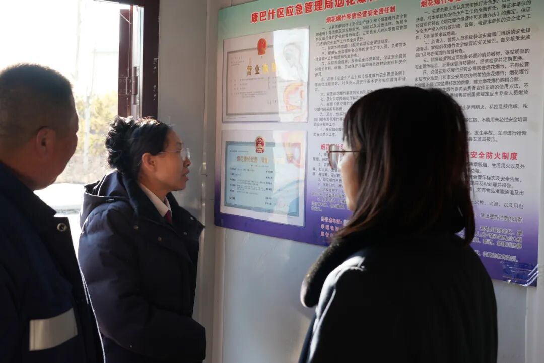 为更好传承中华优秀传统,保护人民群众生命财产安全,康巴什区人民检察院开展春节期间烟花爆竹专项工作。走访中,检察人员详细了解烟花爆竹安全培训、手续办理、以及销售情况,询问经营者遇到的难点、痛点以及法律需求。对是否存在超量储存、消防设施配备是否完善、安全警示标识是否醒目、实名制销售是否落实等安全事项,检察人员也进行了认真查看核实,同时提醒经营者切实提高法治意识和安全防范意识,确保节日期间烟花爆竹安全。