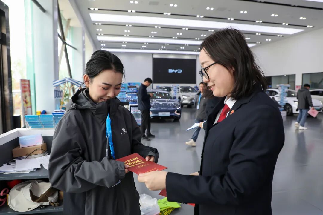 民法典施行至今已满五年,为扎实推进民法典宣传普及工作,让法治精神如春雨般滋润群众心田,5月23日,康巴什区人民检察院普法小分队走进比亚迪4S店,举办了一场别出心裁、极具沉浸感的民法典宣传活动。 活动现场,工作人员巧妙地将展厅变身为 “法治课堂”。在“法典大闯关,快问快答” 环节,比亚迪汽车销售人员与前来看车的消费者积极响应,纷纷踊跃参与,现场气氛热烈非凡。活动精心准备的题目全面涵盖了民法典中物权、合同、人格权等诸多核心内容,兼具实用性与趣味性。参与者们有的眉头微蹙、低头认真思考,有的彼此靠近、小声交流讨论,在快速答题的过程中,不断加深对法律知识的理解。一位年轻消费者满脸笑意地说道:“没想到看个车还能参与这么有趣的法律知识快问快答,答对了还有奖品拿,感觉既收获了知识,又收获了快乐,简直太好玩了!” 据统计,此次活动吸引超 80 人参与,累计完成答题 300 余次。比亚迪销售经理也不禁点赞:“这样的活动不仅提升了员工的法律素养,也为消费者营造了学法用法的良好氛围,希望以后能多开展!” 此次民法典宣传活动,以创新形式打破法律知识传播壁垒,让参与者深刻认识到民法典与日常生活的紧密联系,有效增强了群众自觉守法、遇事找法、解决问题靠法的意识和能力。下一步,康巴什区人民检察院将持续探索 “法治 + 行业”、“法治 + 场景” 的融合模式,开展更多群众喜闻乐见的普法活动,为推进法治社会建设注入新动能。 |