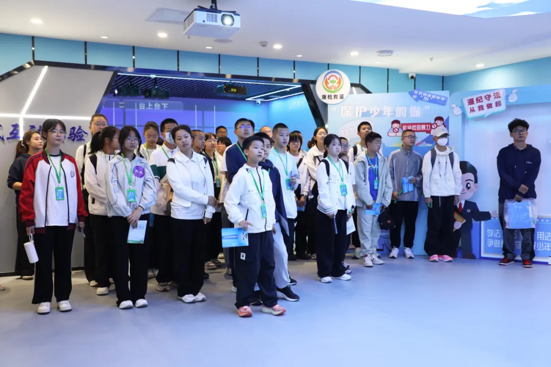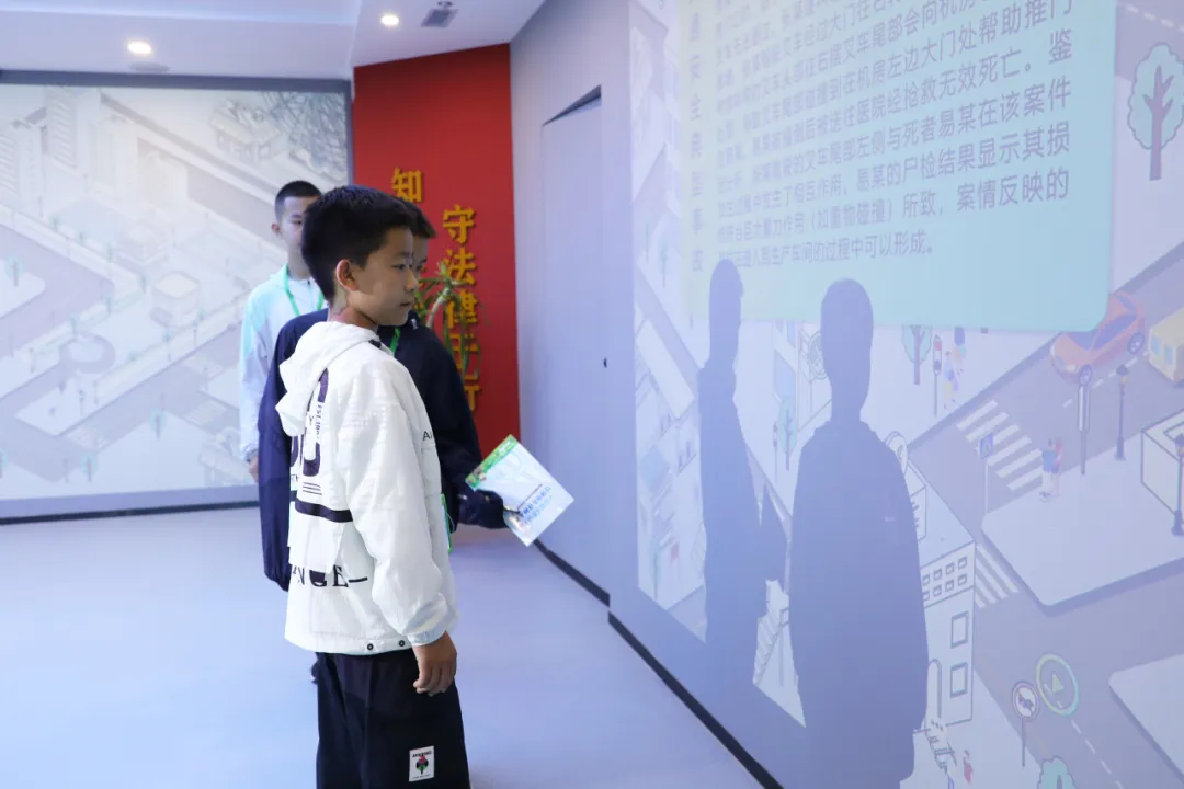 走进基地,未检检察官带领少先队员们先后参观了序厅、智慧法治学习区、游戏互动区等展区,同时结合近年来未成年人犯罪特点、办案实践等,检察官重点向孩子们讲解了“法”字的来源、校园欺凌及电信网络诈骗等知识及预防措施。同时,还围绕交通安全、遇到火灾与地震如何逃生等内容展开科普,借助身边交通事故案例,强调遵守交规、文明出行的重要性 。少先队员们“沉浸式”体验证据查找、吸毒后人体变化等,在实践中触摸法律温度、感受法治力量,实现从“被动聆听”到“主动探索”的转变 。
