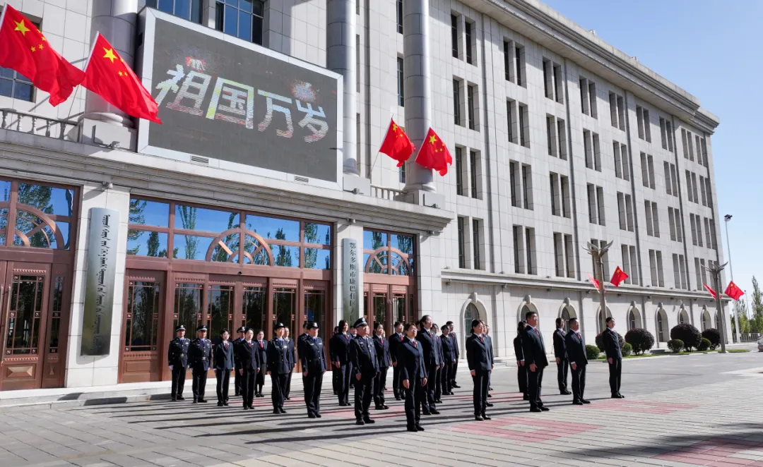 金风送爽,秋阳铺展。在中华人民共和国成立76周年的喜庆氛围日渐浓郁之际,康巴什区人民检察院院内旌旗猎猎、检徽熠熠,一场承载着忠诚与信仰的升国旗仪式如约而至——以赤子之心向祖国致敬,以检察担当凝聚奋进力量,让“为国守正、为民司法”的初心在晨光中愈发炽热。